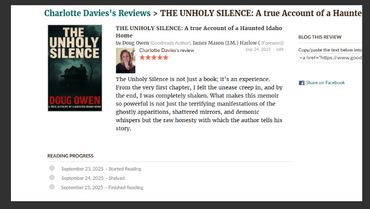 Reviewed in the United States on June 10, 2025Verified PurchaseDoug Owen’s The Unholy Silence is a gripping, emotionally charged journey into the unknown that had me on the edge of my seat from beginning to end. The fear and tension are palpable, and Owen’s vivid storytelling made me feel every moment as if I were living it myself.