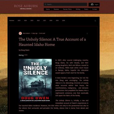 For some books, the haunting is in the story itself: shadows moving, footsteps in the night, the chill of something unseen. But with Doug Owen’s The Unholy Silence, the haunting runs deeper. This is not just a ghost story; it is a memoir of survival, faith under fire, and the silence that eats away at families when suffering is hidden from view. Reading it was not just unsettling — it was profoundly human.